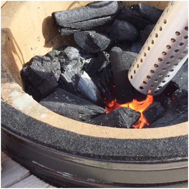 Mettez bien la tête du briquet électrique en direction et au contact des charbons de bois, de façon à ce qu’ils prennent feu rapidement.