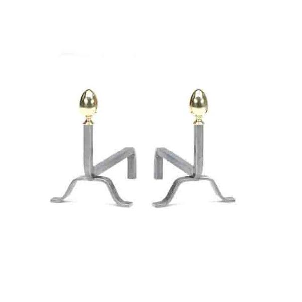 Les chenets pour cheminée, avec les boules ovale laiton polie, ont une forme originale et contemporaine. De part leur forme, ces chenets s’adaptent particulièrement bien aux cheminées modernes. Ces accessoires cheminée servent à la fois comme objets de décoration mais sont également pratiques. Ces chenets cheminée retiennent les bûches dans votre foyer. Vous pouvez poser dessus une grille foyére.