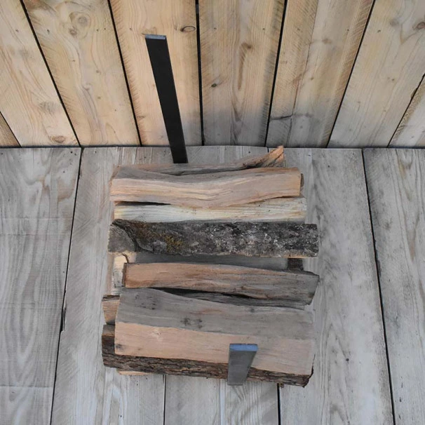 Il est conseillé d’utiliser deux, voire trois équerres, pour pouvoir vous en servir en tant que mur de bûches. Vous trouverez des exemples dans la galerie photo.
