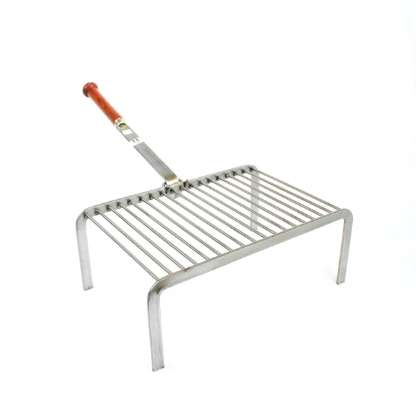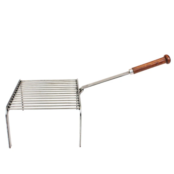 Cette grille de cuisson est équipée d’un long manche en acier pour éviter de vous brûler.