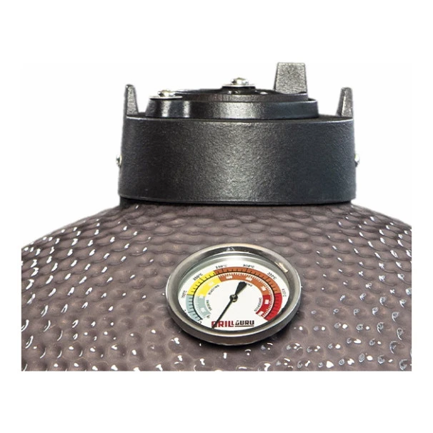 Le Grill Guru Classic Compact est un barbecue au charbon de bois à haute résistance thermique. Grâce au couvercle, toute la chaleur et l’humidité restent dans le barbecue, gardant la viande juteuse et tendre. Surveillez la température avec le thermomètre à couvercle intégré. Si la température est trop élevée, ajustez-la avec l’alimentation en air réglable. La grille en acier inoxydable a une surface de cuisson de 34 centimètres. sur lequel vous barbecue pour 4 à 6 personnes. Utilisez le barbecue comme un barbecue de table et régalez vos convives sur votre terrasse ou en mode pique-nique.