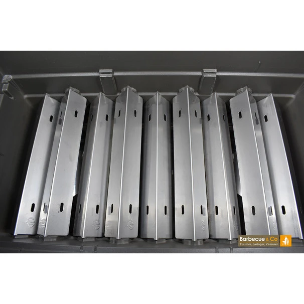 - Les 5 brûleurs principaux en acier inoxydable de haute qualité sont intégrés dans le robuste boîtier du brûleur en fonte d’aluminium. Le système de distribution de chaleur unique rend ce gril indispensable pour le prochain barbecue en famille et entre amis.