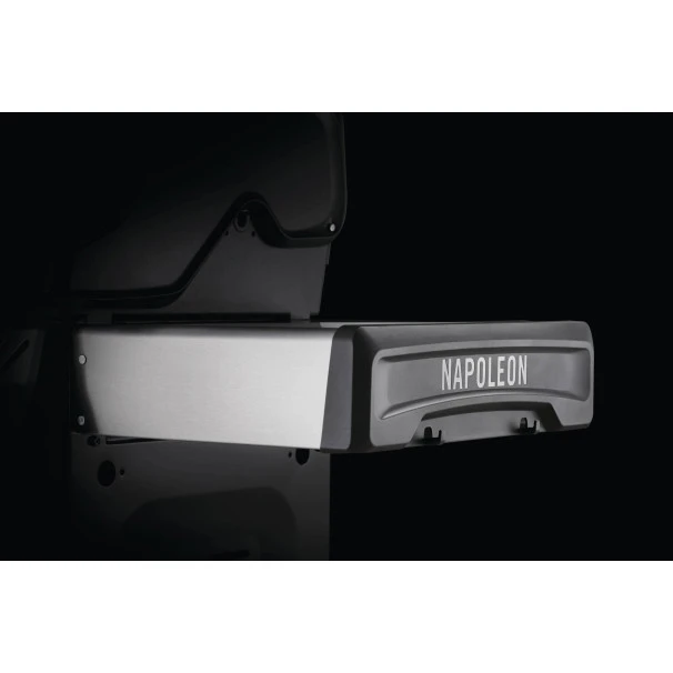 - Thermomètre ACCU PROBE™ de Napoléon, plus que fiable, est intégré dans le couvercle et indique la température intérieure du gril à gaz.
