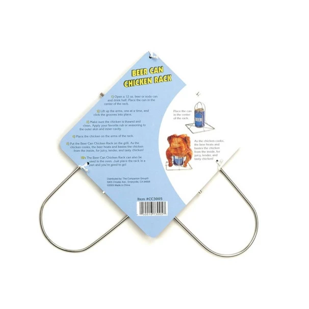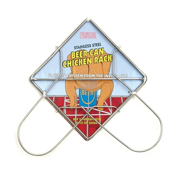 Obtenez une volaille moelleuse, cuite au barbecue, grâce au poulet canette de la marque Charcoal Companion. Placez une cannette de bière, de soda au milieu afin de cuire et parfumez ainsi votre poulet. Puis, placez le sur la grille de votre barbecue sans oublier de refermer le capot. Cet authentique poulet pour barbecue gaz ou barbecue charbon de bois, vous permettra de cuire un poulet de façon originale !