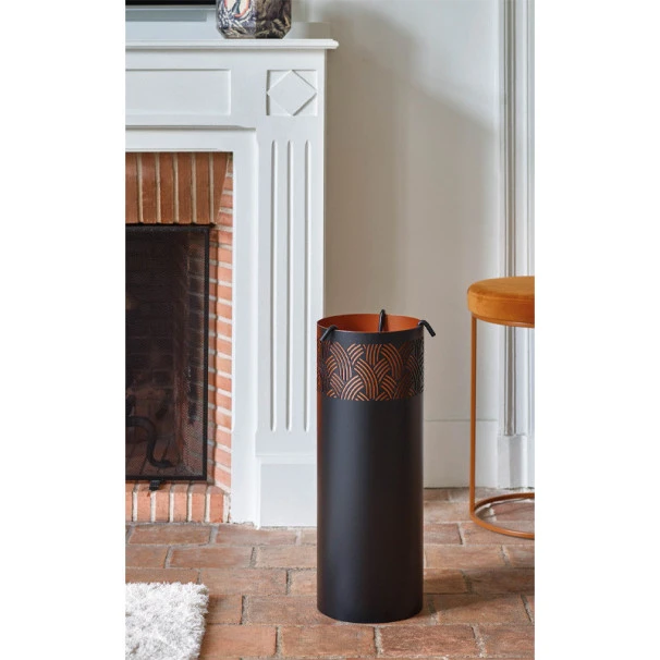 Ce serviteur 4 ustensiles de la marque Dixneuf est l’accessoire de cheminée design à avoir dans son salon. Son style art déco, chic en fait à la fois un serviteur de cheminée, mais surtout un objet de décoration. Sa couleur « noir givré » et son insert en cuivre lui procure un aspect industrial chic qui s’accordera parfaitement avec des poêles et des cheminées modernes, mais également avec des cheminées plus traditionnelles, en pierre ou en métal.