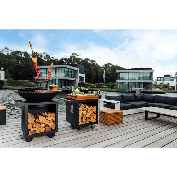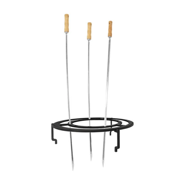 Cet ensemble a été conçu pour se placer au centre de votre votre braséro Ofyr, il se compose d’une grille en acier et de trois brochettes avec un embout en bois à mettre à la verticale durant la cuisson.